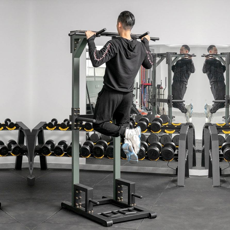 التدريبات المتاحة: تمارين العقلة، رفع الأرجل، الضغط، وتمارين المتوازي